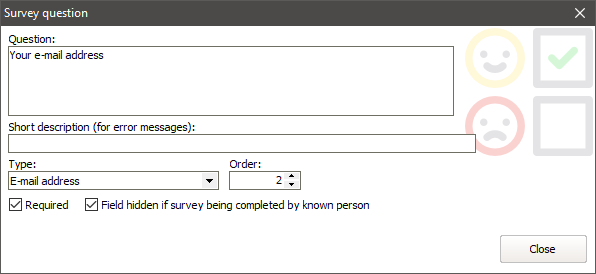 Use this to hide fields such as Name and E-mail address on surveys if the survey is available for not-logged-in people as well as logged-in people, and it's being filled out by someone who is logged-in. |