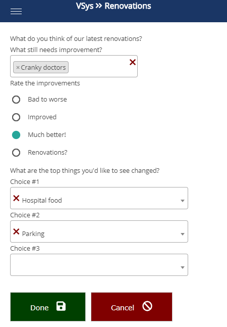 This is how the question will be phrased to the volunteer. For VSys Live and VSys Live Kiosk, feel free to use HTML here. |