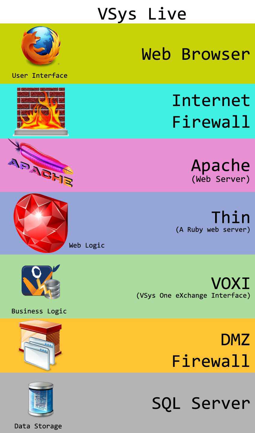 VOXI, VSys Live's business logic layer, is a Windows application and must be run on a Windows machine. Apache and Passenger (another Ruby processor) can be run in a Linux environment.