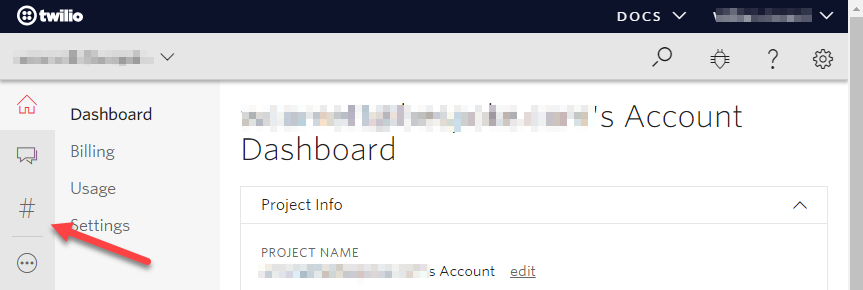 From the main Twilio dashboard, click on the "#" sign to see your active numbers.