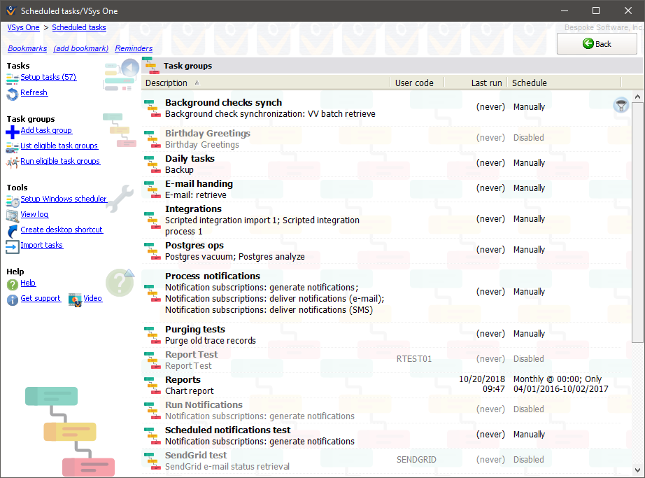 Opens the Windows Scheduler tool within VSys which helps you configure Windows to run various VSys processes. |