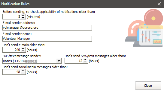 Before VSys delivers any notification e-mail or SMS, if that notification was generated more than this number of minutes ago, VSys will first check to ensure that the notification is not obsolete. |