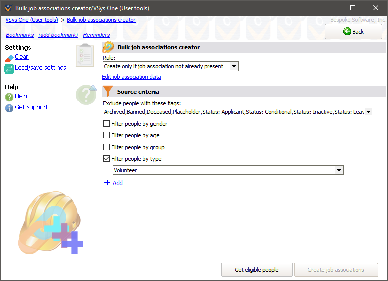 The Bulk job associations creator will create job associations for multiple volunteers at once.