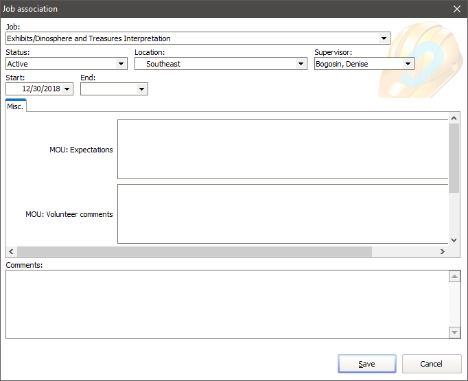 Use the Edit job association data link to select which jobs to create associations for as well as adding the status for the association, location, supervisor and start/end dates.