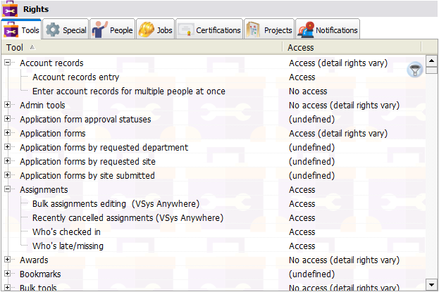 For everything marked as "(undefined)" you're expressing no opinion as to the rights this user should have: that means that the user may get rights from the default user or other roles. In this example, though, no matter what rights the person may get from the default user or other roles before this one they will not have access to "Enter account records for multiple people at once" unless they're given that right explicitly or via a role which comes after this one.