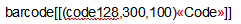 Will render the field Code as a Code 128 barcode 300px x 100px in size.