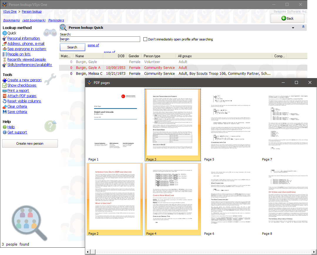Dragging a PDF file onto a person normally attaches that complete file to the person. But what if you have a central, high-speed scanner that's not near your desk and you want to attach scanned images to multiple people? It's inconvenient to scan each of the pages into individual PDF files, but you can't put the whole PDF file (with multiple volunteers' data in it) into each person.
