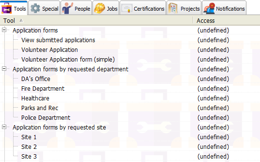 The idea with this rights mechanism is to make it easy to allow site or department supervisors to access applications where their site/department is requested by the volunteer in an online application without having to define an application for each site and/or department.
