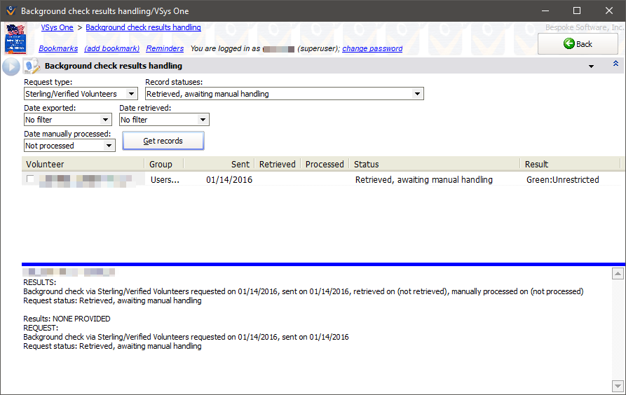 After the raw results have been downloaded, they must be checked and approved or rejected by a human operator. VSys will never make any acceptance or rejection decisions for you - this process requires a trained user to intelligently determine the suitability of every applicant.