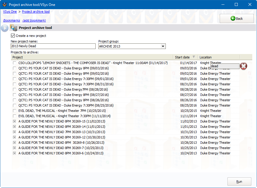 If you open the new project that was created, "2013 Newly Dead", and look at the jobs within it, you'll see that VSys took all of the jobs from the individual projects and then put them into job groups named after the original project.