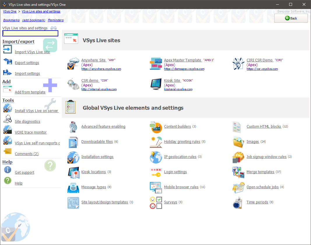 Common VSys Live tasks for a site visitor