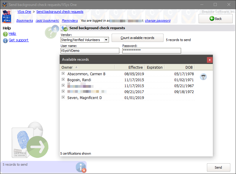 Sending Sterling/Verified Volunteers Background Check Requests for Processing