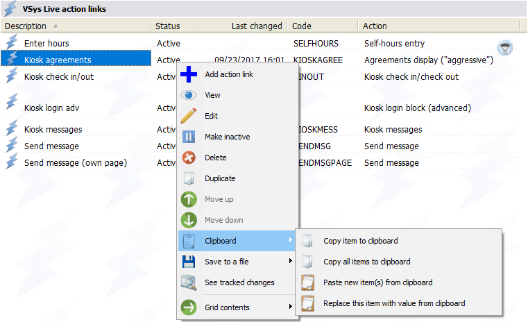 In many places in VSys One, complex objects like setup options, custom HTML blocks, merge templates, visibility rules and others are sometimes a pain to create and even harder to re-create somewhere else in VSys. An easy way to copy items from one site to another, or even to another VSys database, is using the Windows clipboard.