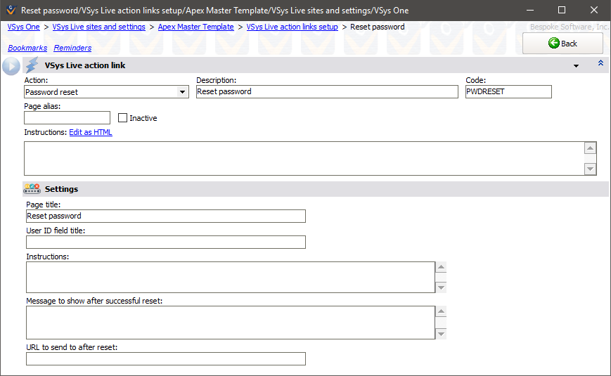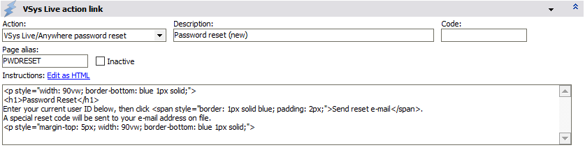 Instead of sending the user an actual password, which you'd then hope they'd remember and which could have been lost in transit, VSys Live sends a unique reset code. That reset code is good for a limited time and only while the user remains on the reset screen. Once they leave or the code expires, it's no good. If someone intercepted their reset code, that someone can't actually use it. And the user gets a password that they themselves chose.