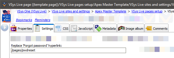 On your template pages, change Replace 'Forgot password' hyperlink to point to this action link. This uses the Page alias setting from the action link itself.