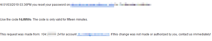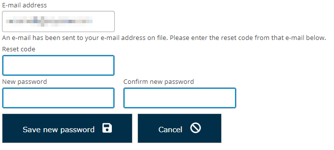 After entering their e-mail address and clicking Send reset code, they'll see this:
