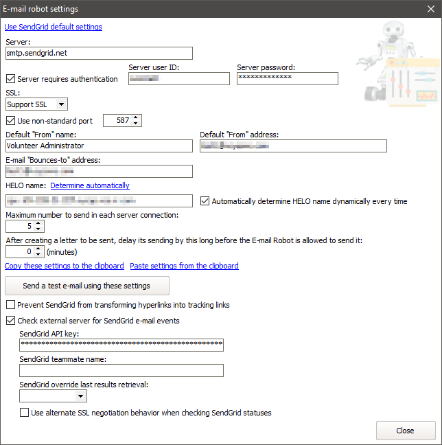 Advanced SendGrid settings
