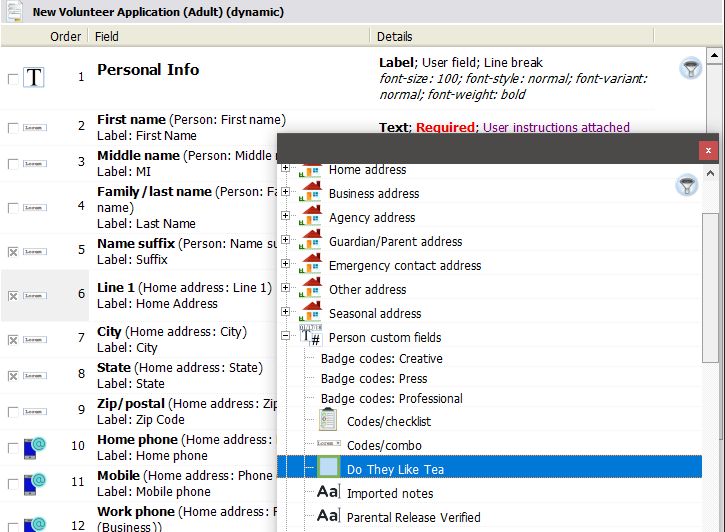 Data fields contain information from different places throughout VSys. When you use a data field within an application form, VSys will tie the information to where it is stored in VSys. Let's add an Application date field.