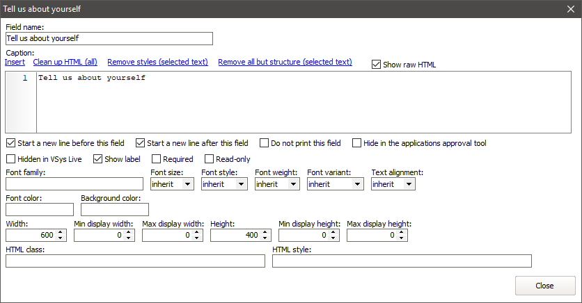 Unlike fixed layout applications, fields in dynamic layout applications don't use Windows-type fonts, sizes and colors: because they're always displayed in a browser, they can use the much more powerful HTML styles. These actually generate CSS, which every modern browser knows how to render and render consistently well.