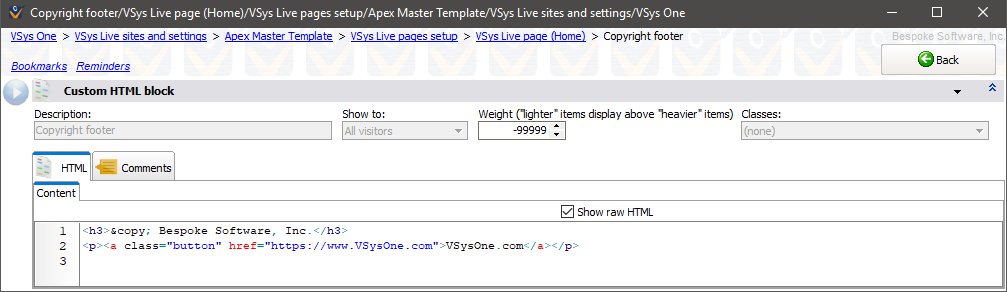 Raw HTML: whatever you enter here is what VSys Live will show. |