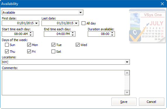 When you insert a user field, you'll find a special type of data field, the availability checkbox. These fields encapsulate multiple days of availability in a single, user-friendly field. For example, you can define a field Monday mornings, which sets the volunteer as available every Monday through the end of the year, or one indicating that they're available all day Monday through Friday.