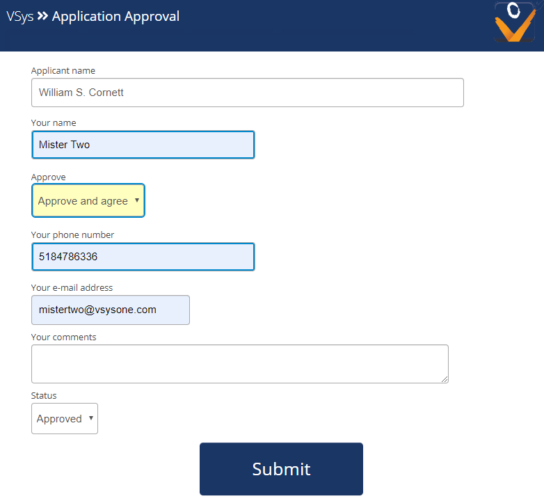 Application approval links in VSys Live are not part of the standard VSys Live implementation. In general, installing and configuring this option comes with an additional fee. See Advanced features for information.