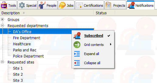 These aren't "rights": instead they link the user to various items such as groups, requested sites and requested departments. Notifications for the virtual subscriber "Recipients via subscription in VSys Security rights" get sent to the VSys Security users who are linked to: