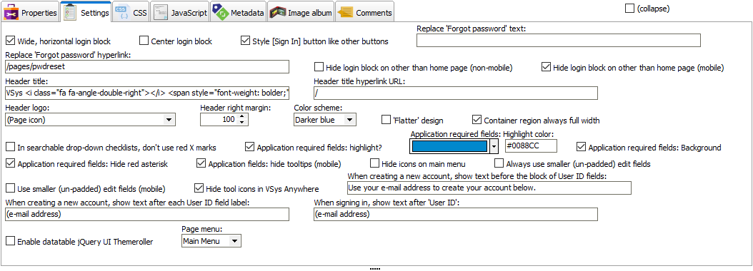 In the Sign In block, if you put a URL here, VSys will change the Forgot password hyperlink to go to this URL instead. This is especially helpful if you have the VSys Live/Anywhere password reset action link configured: VSys Live would use that tool instead of the (lame) default password reset mechanism. |