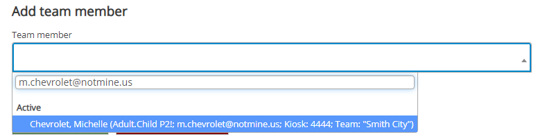 When adding a person to a team, that person must already exist in VSys and not be part of any other team. In addition, the team leader must enter the person's full e-mail address or full phone number to find the person: no lookup by name, DOB or other values is allowed.