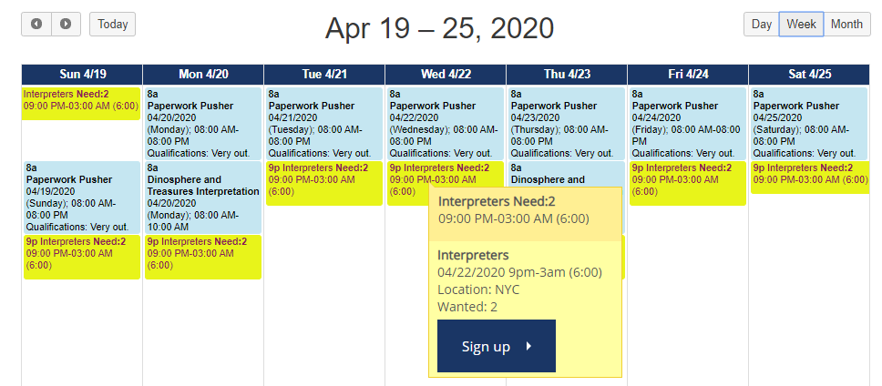 When the volunteer has entered keywords, any job tags associated with the slot will be checked against those keywords. |