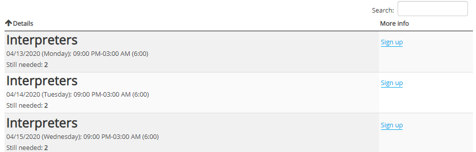 Use this for cases where volunteers are in a competitive position for slots and are likely to use more than one active login or multiple searches at once.