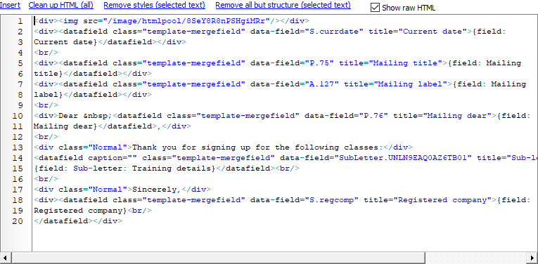 The HTML editor in VSys is by far the best HTML editor available for a native Windows application. Unfortunately that's not a very high bar to clear... If you have complex HTML that you want to create or edit, consider using https://anywhere.vsyslive.com/pages/tool:any.publichtml or https://htmleditor.io/. Neither will handle your images for you, nor will they help with merge fields, but they're great for basic HTML editing that you can then copy/paste back into VSys One.