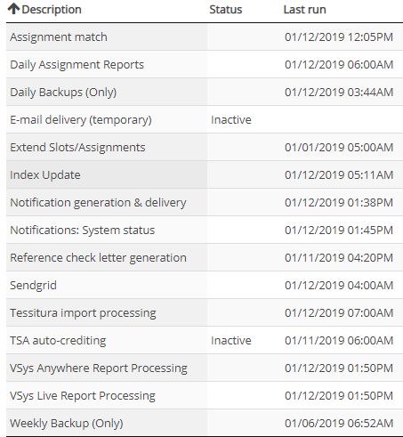 The Scheduled Tasks Monitor is a read-only view into VSys scheduled tasks, their statuses and when they were last run.