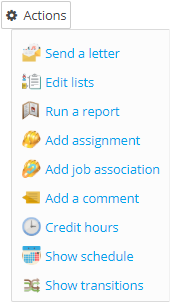 Hold your mouse over the Actions button, if present, for things you can do to/with a specific person.