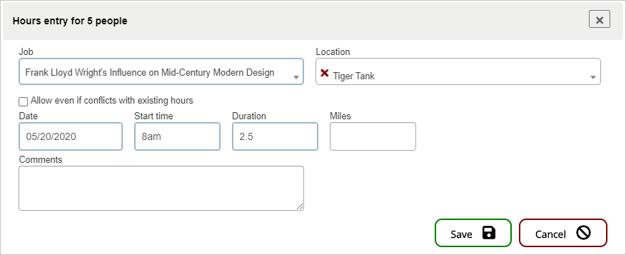 Select a job and credit this person with hours. (This doesn't credit assignments, it's used for ad hoc hours.) |