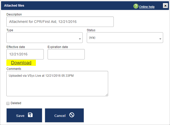 Click Download to open a copy of the attachment, or change any properties of the application: Type, Status, etc. then click Save.