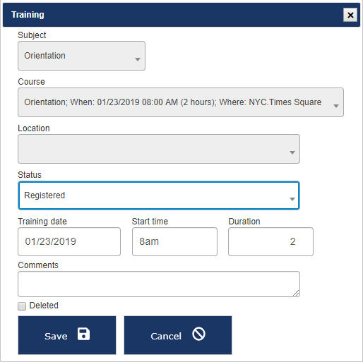 You can change the Subject, Course or Location for a training record here if the training isn't associated with a training course, otherwise those fields are read-only.