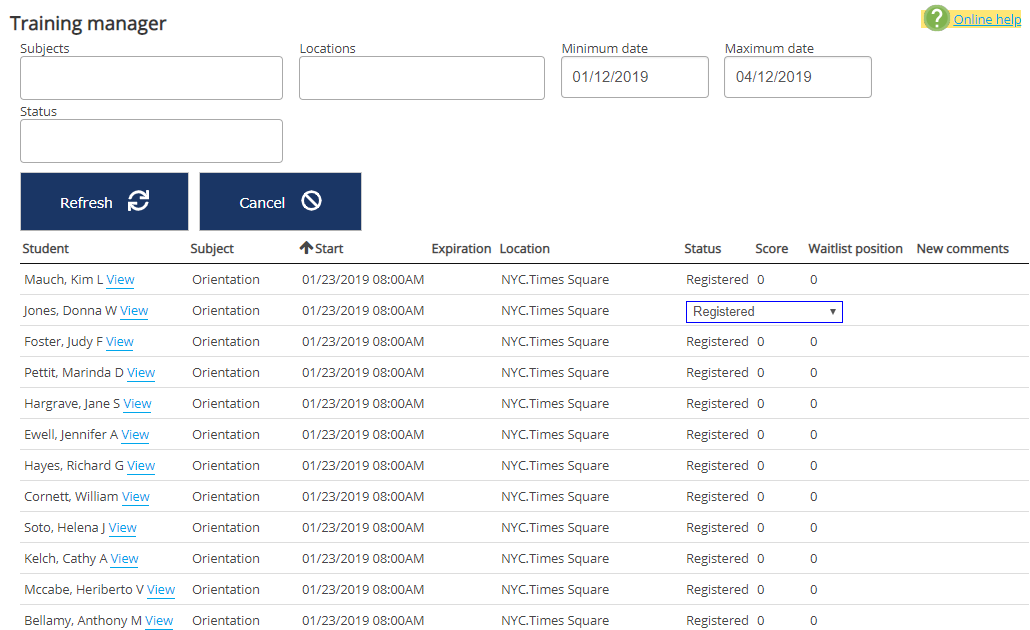 Use the filters at the top to find the records to work with, then click Refresh to locate them.