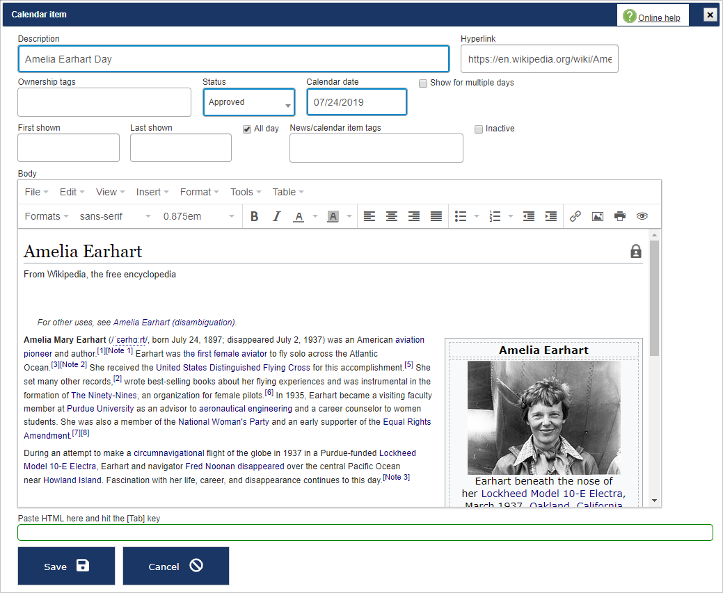 See editing HTML in VSys Anywhere for tips on editing the Body here, as well as on copy/paste of content from other sources.