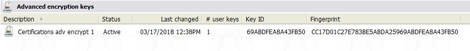 Data is encrypted in VSys using Advanced Encryption Keys. These represent the PGP "public" keys. Create new encryption keys with the Advanced Encryption Keys Setup tool.