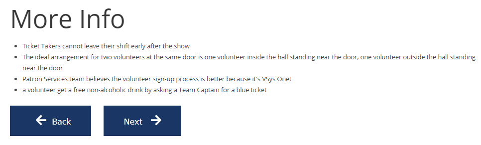 VSys Live will show all questions and contents on the same page until it hits a question or content with this checked; it's effectively a "page break" that stops the quiz until the volunteer hits Next. |
