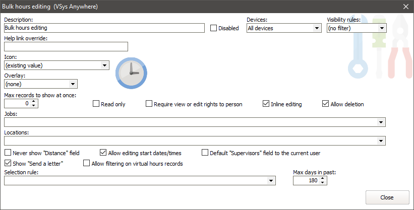 Shows a link to send a letter to the volunteer from within VSys Anywhere; only letter templates based on people or hours can be used. |