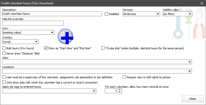 Normally VSys will limit hours here to under 24 at a time. Check this to allow long duration hours. |
