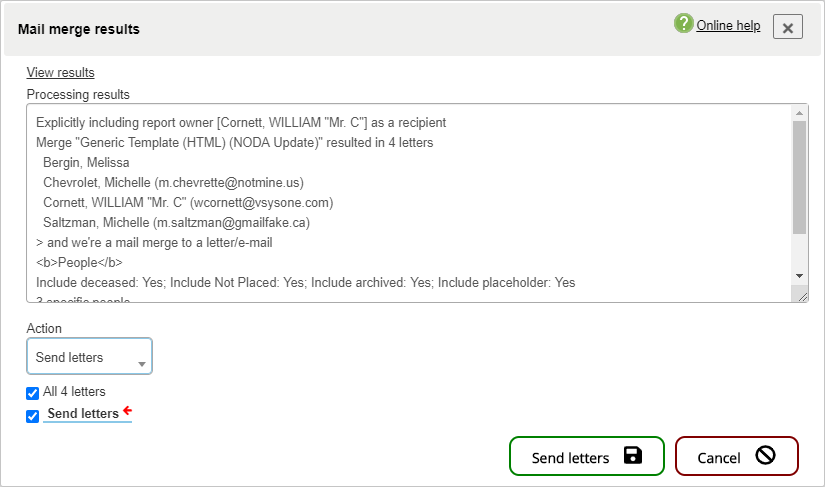 These letters are not attached to the recipients' profiles until you click Send letters. If you do nothing, eventually these pending letters will be automatically purged since they're not linked to anyone's profiles.