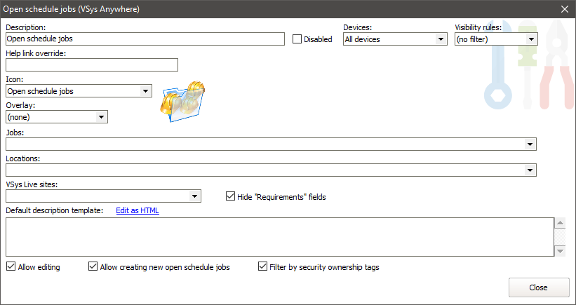 HTML text entered here will be the default Description used for newly-created open schedule jobs. |