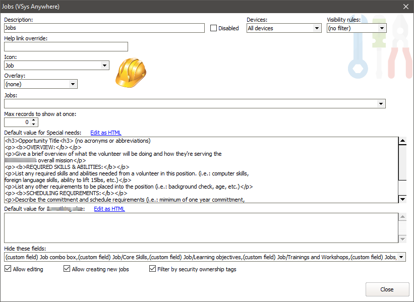 Suppress these fields when editing and creating new jobs. |
