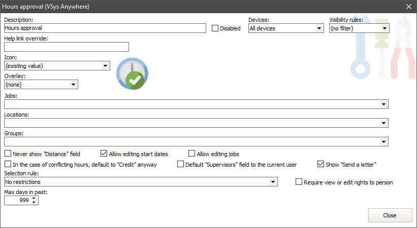 Any filters here limit the tools to these jobs and locations and people in these groups. |