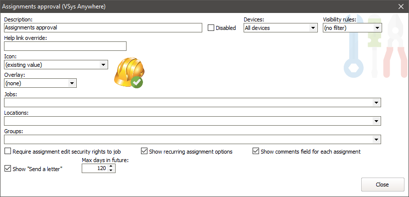 Any filters here limit the tools to these jobs and locations and people in these groups. |