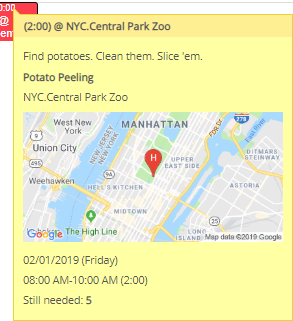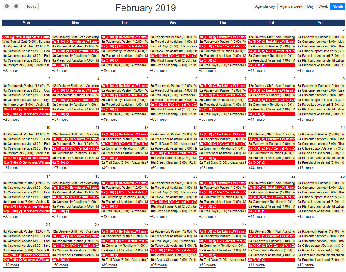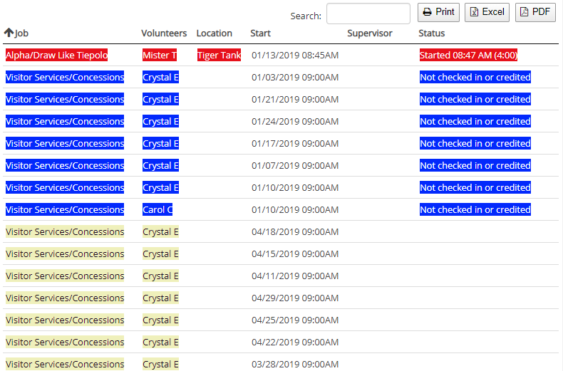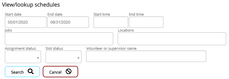 Any value here will be compared against the name of the volunteer or supervisor in a slot, assignment, etc. and only show items which match one or both of these. This is a very handy way of finding someone by name, or all of the slots that are supervised by a specific person. |