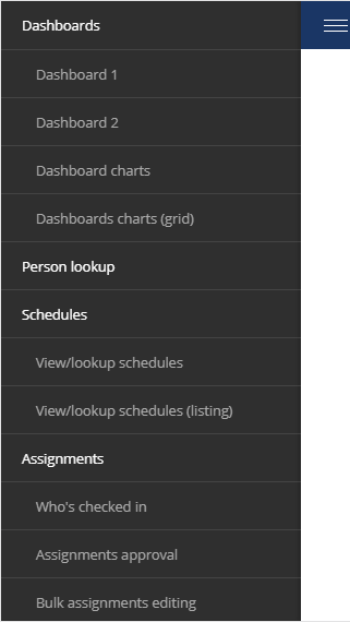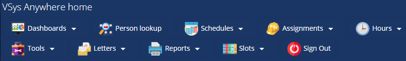 Menus show at the top of the browser screen, and their contents depend entirely on how your system administrator has configured your tool profile. A menu may extend to more than one line if there are more items than can be displayed at once on a single line.